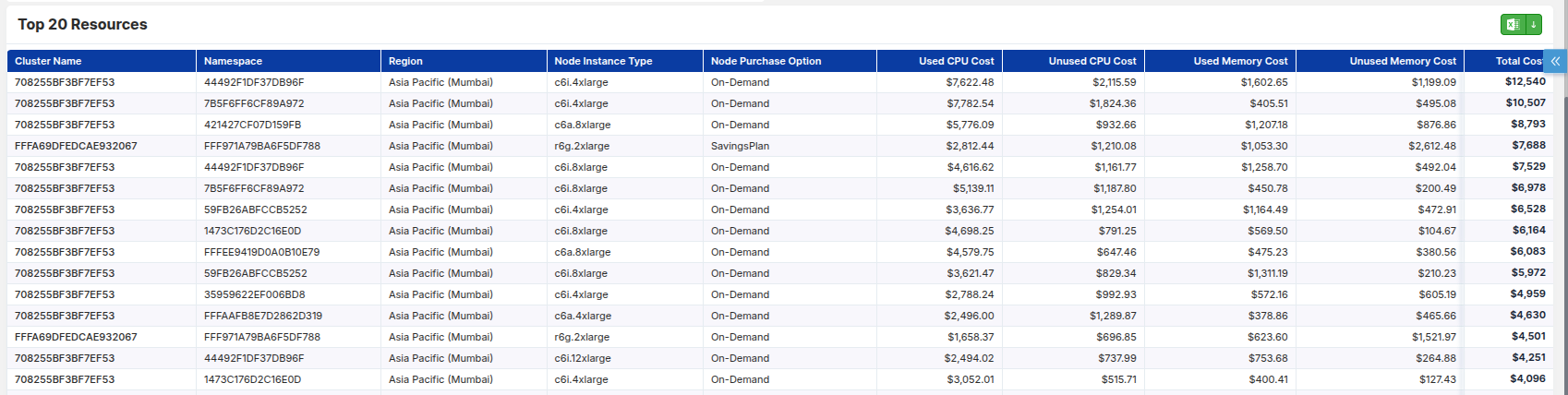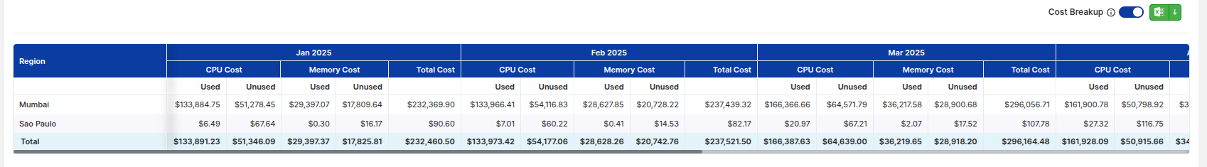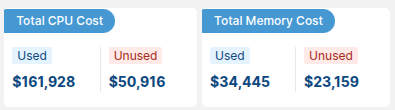 - Total CPU Cost and Memory Cost, split into Used and Unused. This highlights potential optimization opportunities.