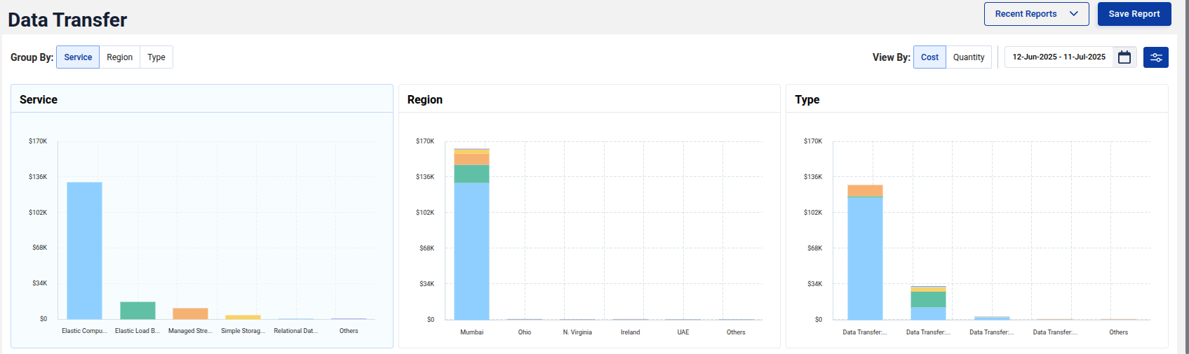 You can apply specific filters, save these views as reports, and load them later for ongoing analysis or team reviews. This feature supports continuous cost monitoring and data-driven decision-making.