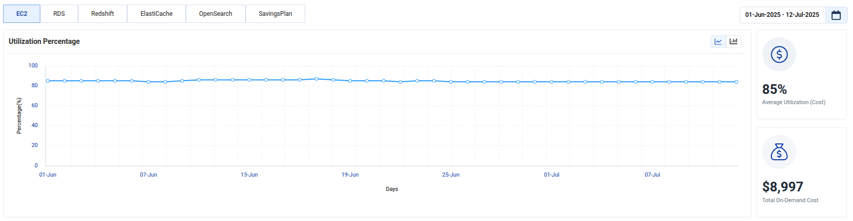 - Average Utilization: This indicates the average utilization over a defined period. It gives you a quick overview of your Reserved Instances’ effectiveness over time.