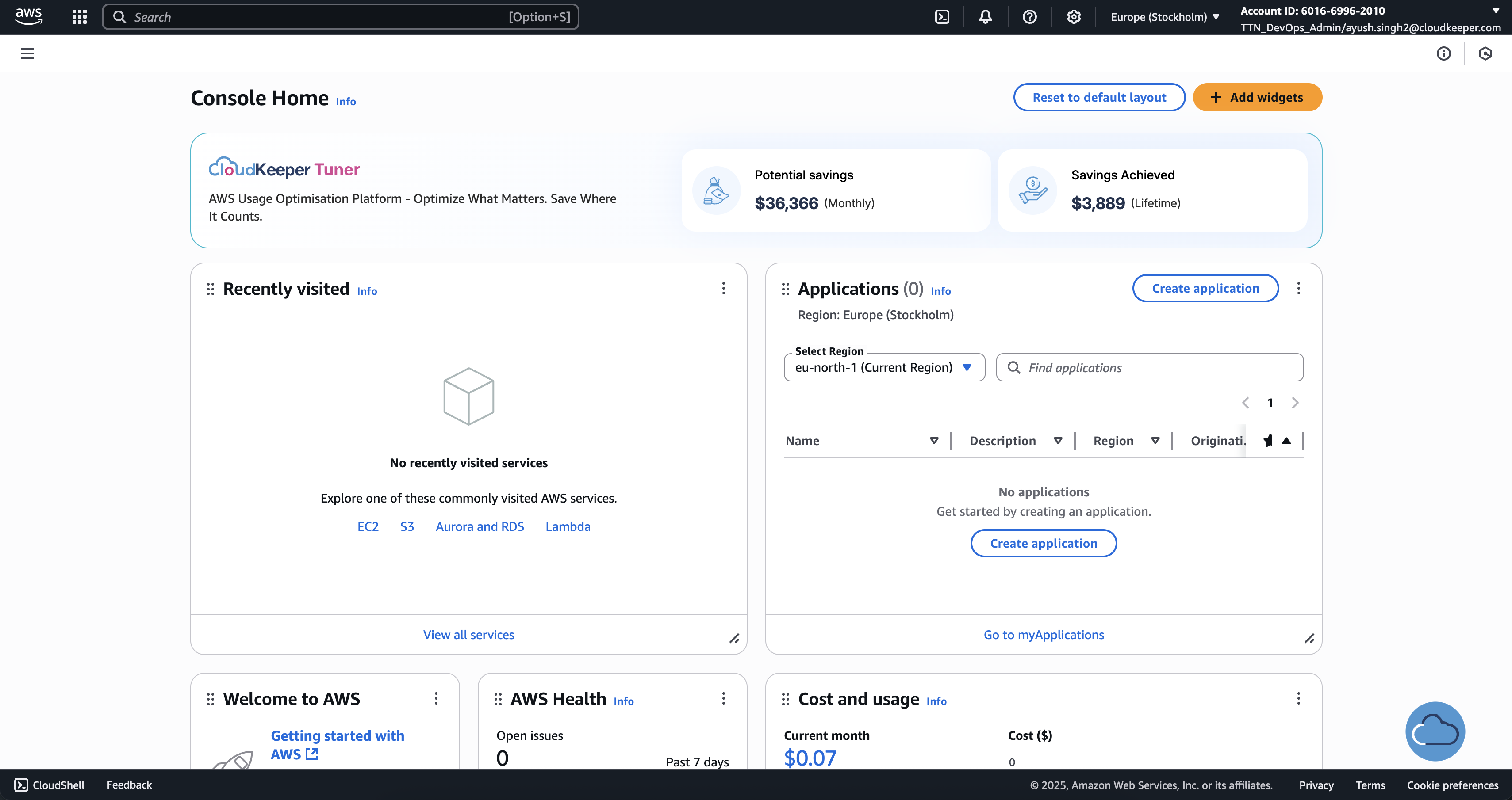- An integrated dashboard on the homepage: See your potential savings, savings achieved, and a summary of recommendations as soon as you log in to AWS.