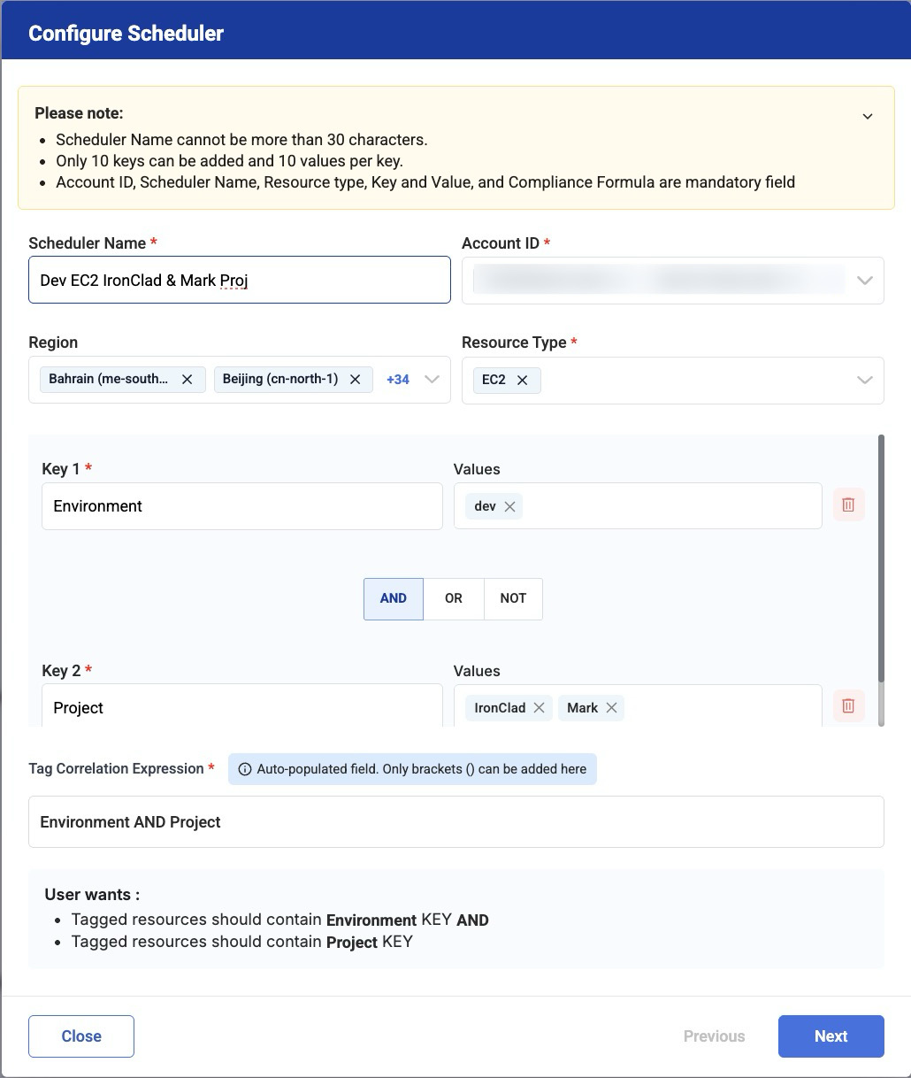 You can also apply additional filters for specific AWS accounts and regions, and even combine multiple tags using logical operators like AND, OR, and NOT.