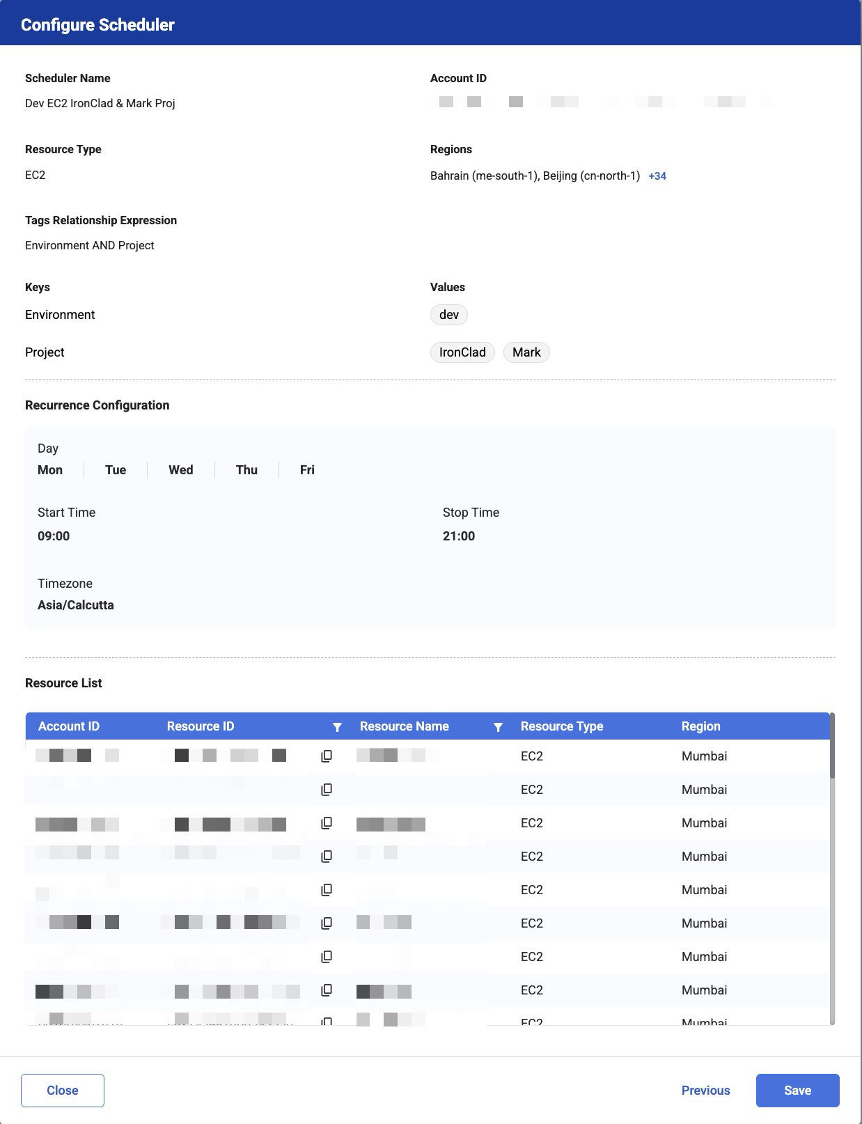 In the final screen, you’ll see a preview of all the resources that the scheduler will act on, along with a summary of your configuration.